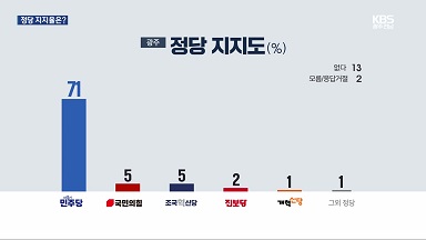 Áö³ ÃѼ± ºñ·Ê´ëÇ¥ ¼±°Å¿¡¼ ±¤ÁÖ 47.72%, Àü³² 43.97%¸¦ ¾òÀ¸¸ç ¹ÎÁÖ´çÀ» ¾Õ¼¹´ø Á¶±¹Çõ½Å´çÀº Áö³ 4¿ù ´ã¾ç±º¼ö Àç¼±°Å¿¡¼ ½Â¸®Çϸç Á¸Àç°¨À» º¸¿´Áö¸¸ À̹ø Á¶»ç¿¡¼´Â ÁöÁöÀ² 5%¿¡ ±×ÃÆ´Ù.