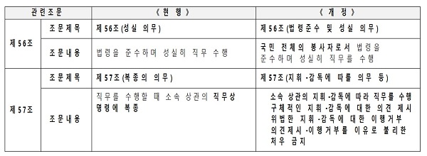 ¾Æ¿ï·¯ 56Á¶ÀÇ '¼º½ÇÀǹ«'¸¦ '¹ý·ÉÁؼö ¹× ¼º½ÇÀǹ«'·Î º¯°æÇϰí, °ø¹«¿øÀÌ '±¹¹Î ÀüüÀÇ ºÀ»çÀÚ'·Î¼ ¹ý·ÉÀ» ÁؼöÇÏ¸ç ¼º½ÇÈ÷ Á÷¹«¸¦ ¼öÇàÇØ¾ß ÇÑ´Ù°í ±ÔÁ¤Çß´Ù.