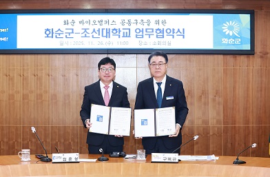 ȼø±º(±º¼ö ±¸º¹±Ô)Àº 26ÀÏ ±ºÃ» ¼ÒȸÀǽǿ¡¼ Á¶¼±´ëÇб³(ÃÑÀå ±èÃἺ)¿Í ¡®È¼ø ¹ÙÀÌ¿ÀÄ·ÆÛ½º °øµ¿ ±¸ÃàÀ» À§ÇÑ ¾÷¹«Çù¾à(MOU)¡¯À» ü°áÇß´Ù°í ¹àÇû´Ù.
