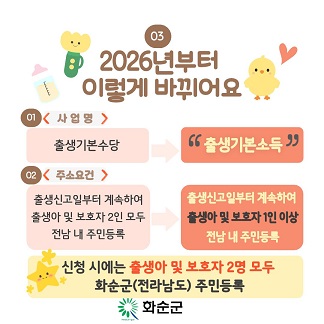 ȼø±º(±º¼ö ±¸º¹±Ô)Àº 20ÀÏ Ãâ»ê Àå·Á¿Í ¾çÀ° ȯ°æ °³¼±À» À§ÇØ ¡®Ãâ»ý±âº»¼Òµæ Áö¿ø»ç¾÷¡¯ÀÇ ½Åû ÀÚ°ÝÀ» 2026³âºÎÅÍ ´ëÆø ¿ÏÈÇØ ÃßÁøÇÑ´Ù°í ¹àÇû´Ù.