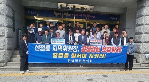 Àü³²¹ßÀüÇùÀÇȸ(ȸÀå ±è´ë½Ä)°¡ 23ÀÏ È­¼ø±ºÀÇȸ °Ç¹° ¾Õ¿¡¼­ ´õºÒ¾î¹ÎÁÖ´ç È­¼ø±º¼ö °æ¼± °úÁ¤¿¡¼­ ³ªÅ¸³­¡¦