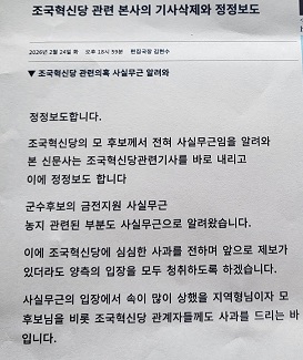 ÃÖ±Ù Áö¿ª »çȸ Àϰ¢¿¡ ÀúÈñ Á¶±¹Çõ½Å´ç ¼Ò¼Ó Ã⸶ ¿¹Á¤ÀÚµéÀ» °Ü³ÉÇÑ ¾ÇÀÇÀûÀÎ ±â»ç°¡ À¯Æ÷µÇ¾ú½À´Ï´Ù. À̸¥¹Ù ¡®±ÝÀüÀû Áö¿ø ¾à¼Ó¡¯°ú ¡®ºñ·Ê´ëÇ¥ ÀÚ¸® ¿ä±¸¡¯¸¦ ¿î¿îÇϸç, ´ç°ú È帵éÀÇ ¸í¿¹¸¦ ½É°¢ÇÏ°Ô ÈѼÕÇÏ´Â ³»¿ëÀ̾ú½À´Ï´Ù.